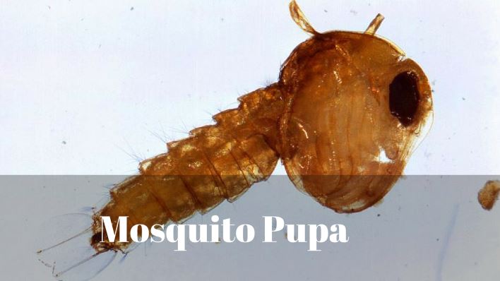 The third stage of the mosquito is the pupae. Mosquito pupae would normally float immobile just below the water surface. However, they are capable to dive or swim aside in a case of danger. This phase in the mosquito life cycle last usually 2-3 days, after which the adult emerges.